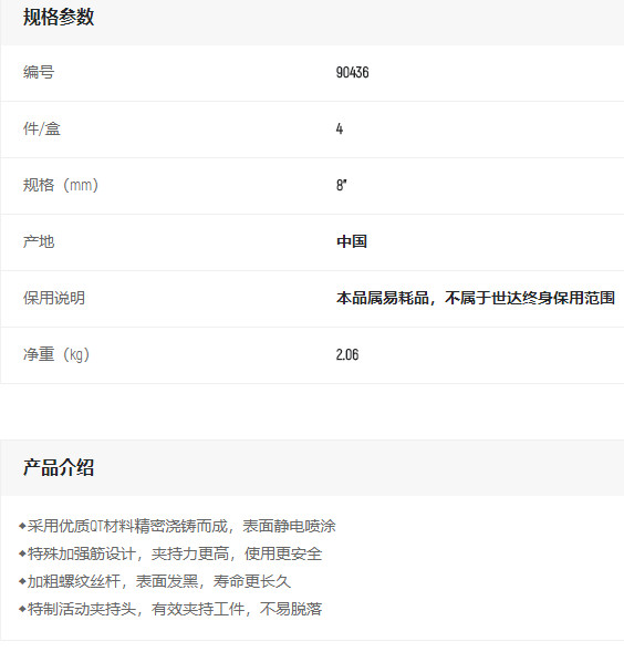 首頁>產(chǎn)品中心>鉗、夾類工具>G形夾/C形夾>世達(dá)G字夾8寸