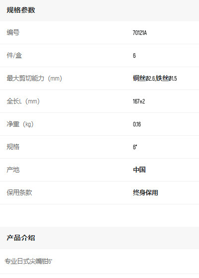 產(chǎn)品名字:世達(dá)專業(yè)日式尖嘴鉗6寸