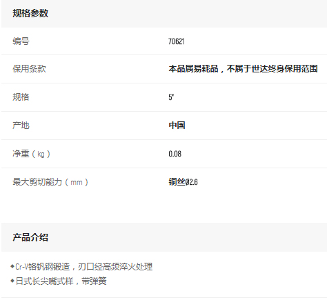 產品名字:世達電子長嘴鉗5寸