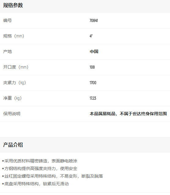產(chǎn)品名字:世達(dá)重型方剛臺(tái)虎鉗4寸