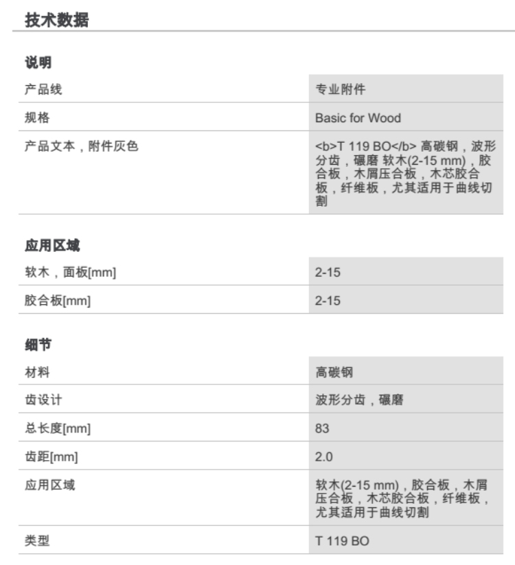 產(chǎn)品名字:博世曲線鋸片T119BO