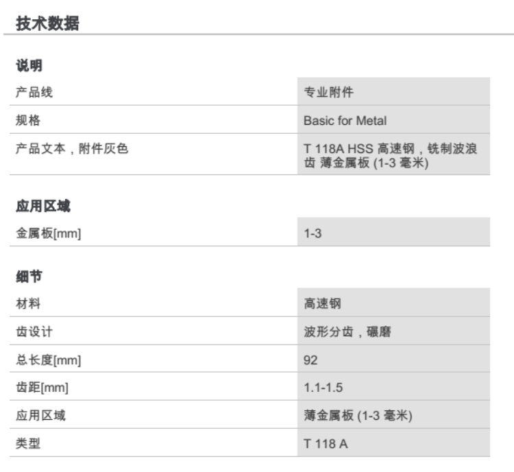 產(chǎn)品名字:博世曲線鋸片T118A